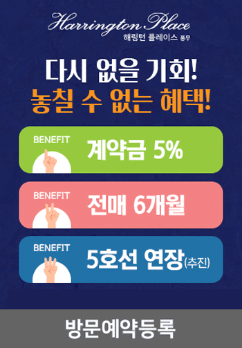 동의합니다. [내용보기] 정보통신망 이용촉진 및 정보보호에 관한 법률을 준수하고 있습니다. 수집하는 개인정보 항목 서비스 이용을 위해 필요한 최소한의 범위로 개인정보를 수집합니다. 수집 및 이용목적관심 단지에 대한 분양 홍보 및 상담, 고객행사 보유 및 이용기간 이용목적이 달성된 후에는 예외없이 해당 정보를 지체없이 파기합니다. 등록